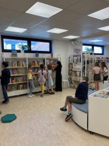 Endlich wieder Bücherei! Die Kinder waren sehr begeistert von der neuen Bücherei. Jetzt wird viel gelesen in den Pfingstferien!