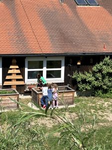 In unseren Hochbeeten werden von Moni und ein paar Kindern auch wieder tolles Gemüse angesäht.