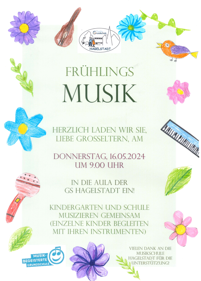 Ohren auf, denn hier kommt die Musik! In der Aula erklingen wunderbare Kindersingstimmen und ihre Großeltern summen und singen mit. Das Frühlingskonzert war ein voller Erfolg! Dankeschön!